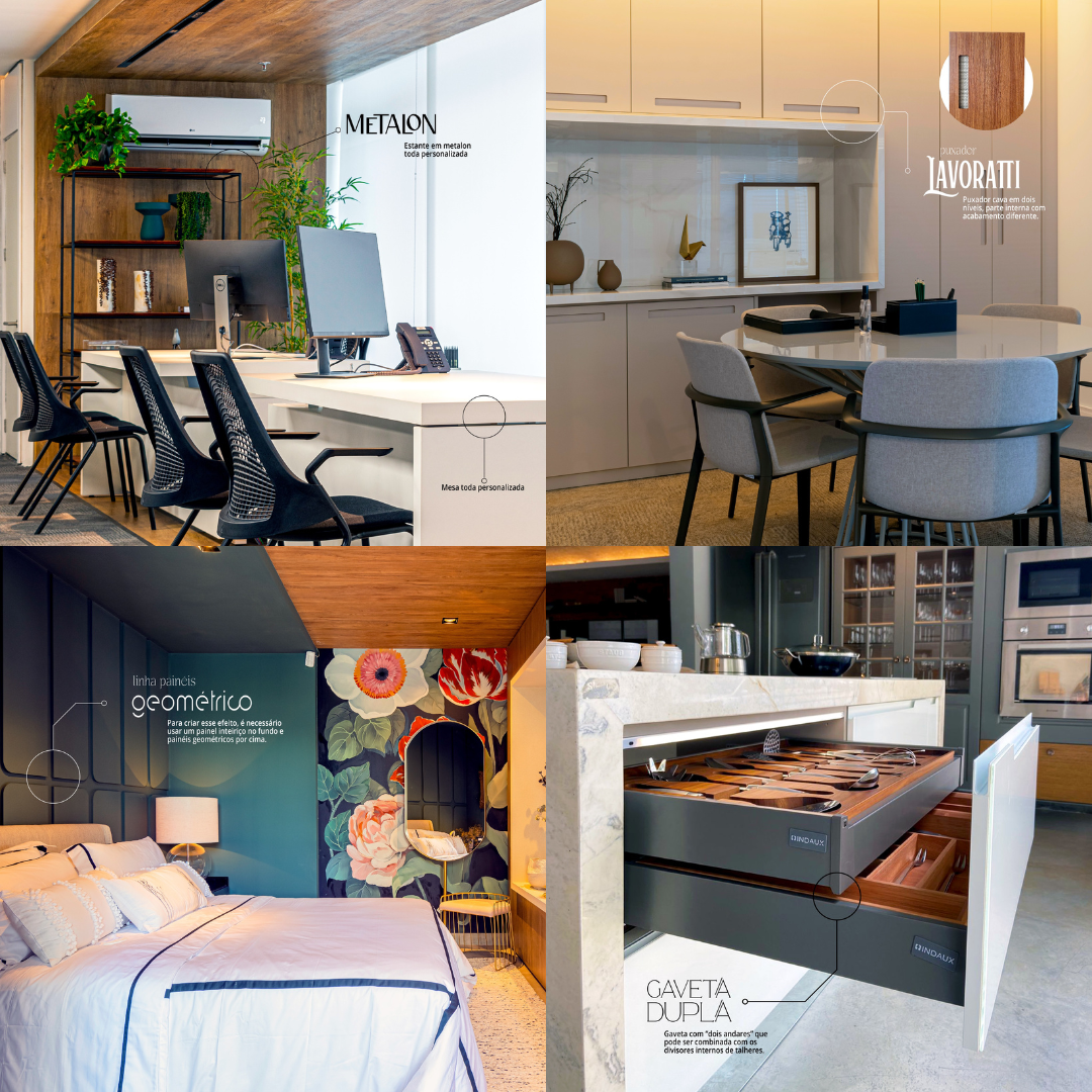 O projeto é elaborado em nosso escritório de arquitetura e o processo de fabricação dos móveis é 100% fabril computadorizado e automatizado, garantindo durabilidade e acabamento impecável em cada detalhe.